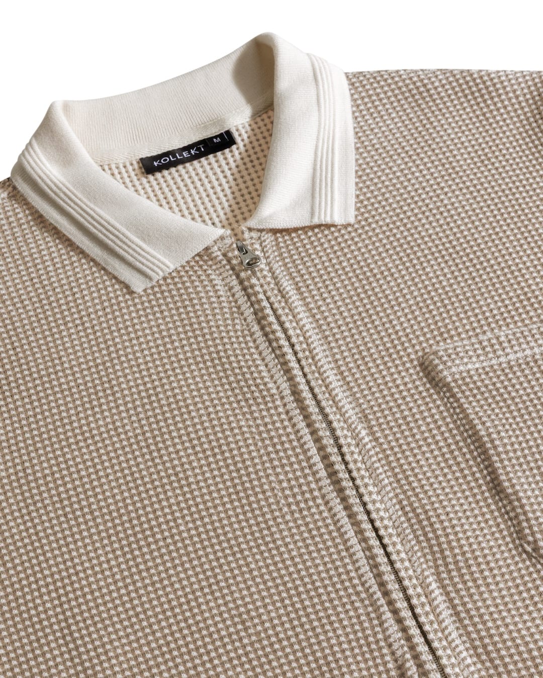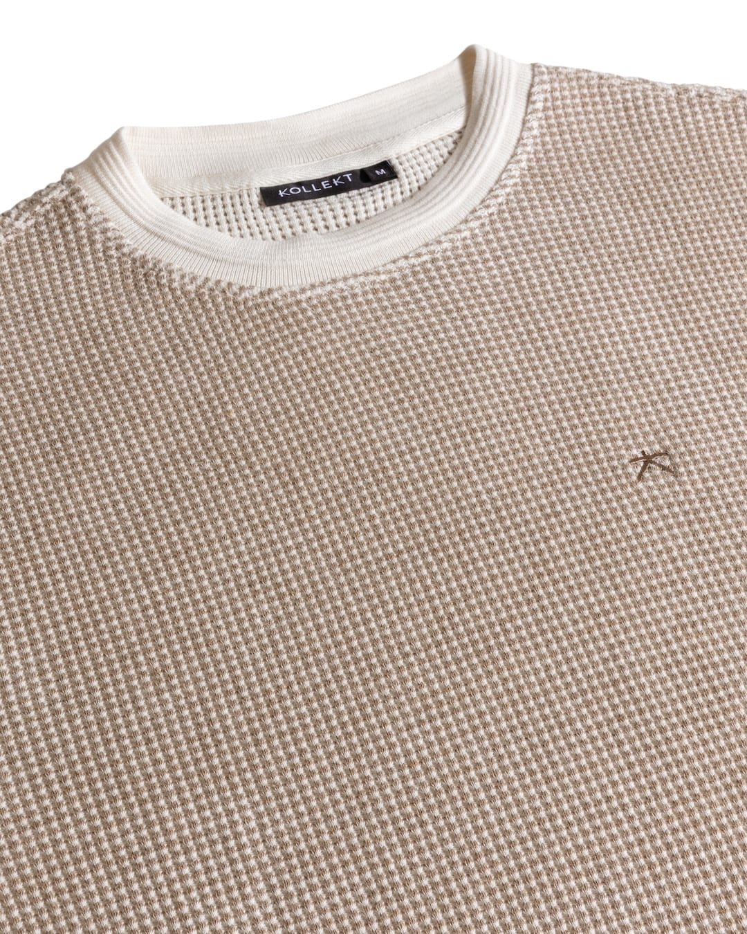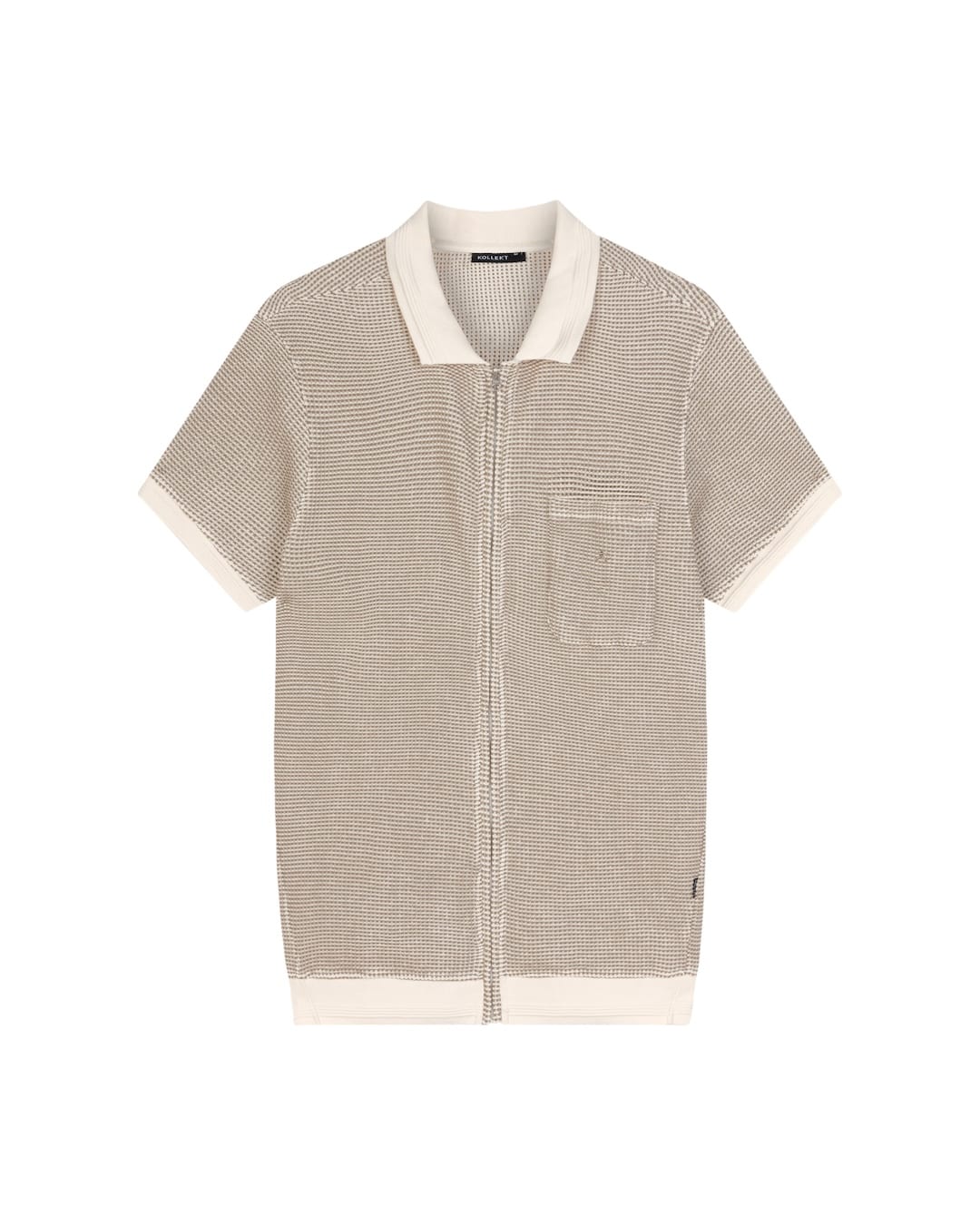 Kraag, onderkant body en uiteinde mouw hebben een unieke structuur in een off-white kleur