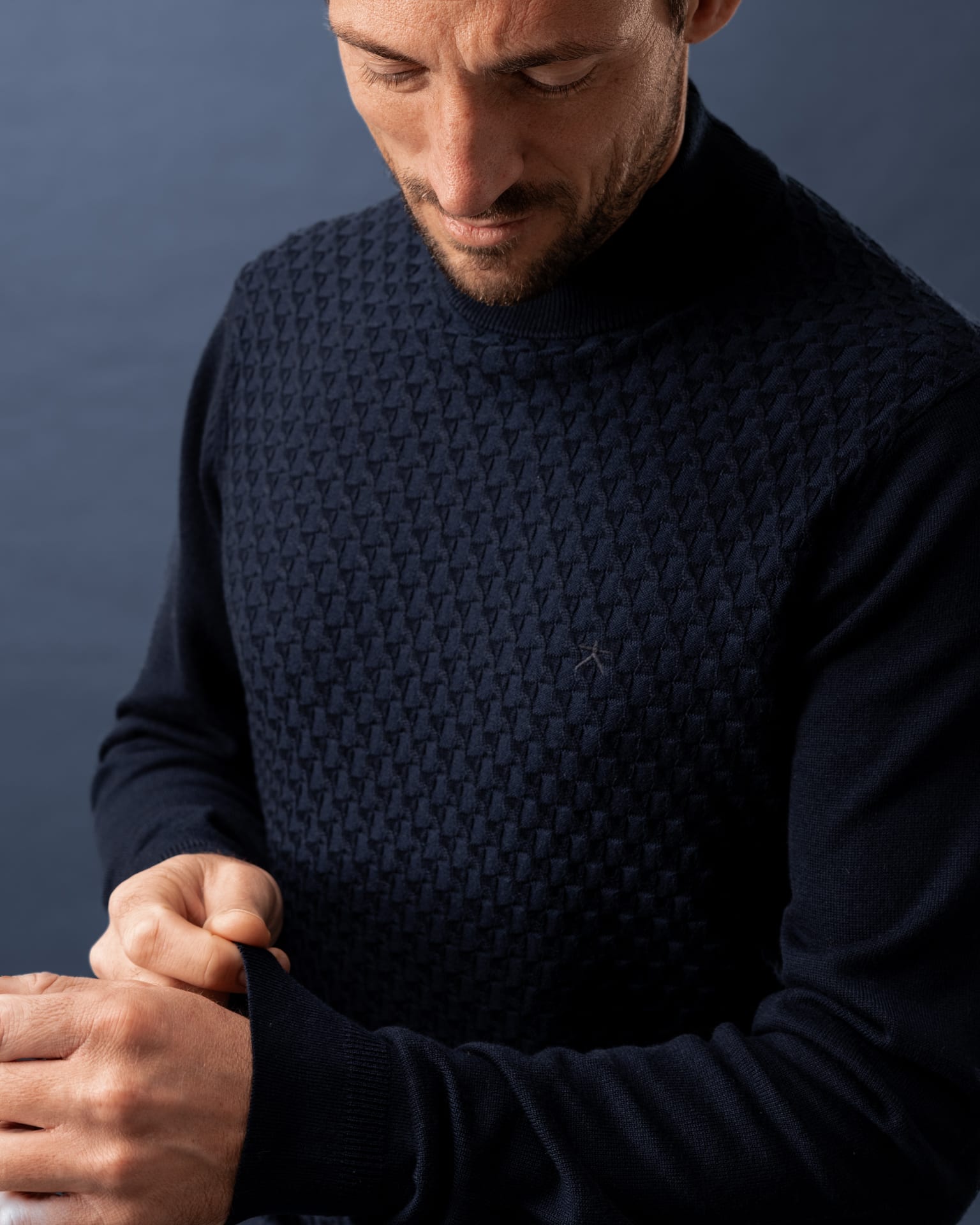 MERINO-LYOCELL TWIST CHECK TURTLE TRUI - NAVY
