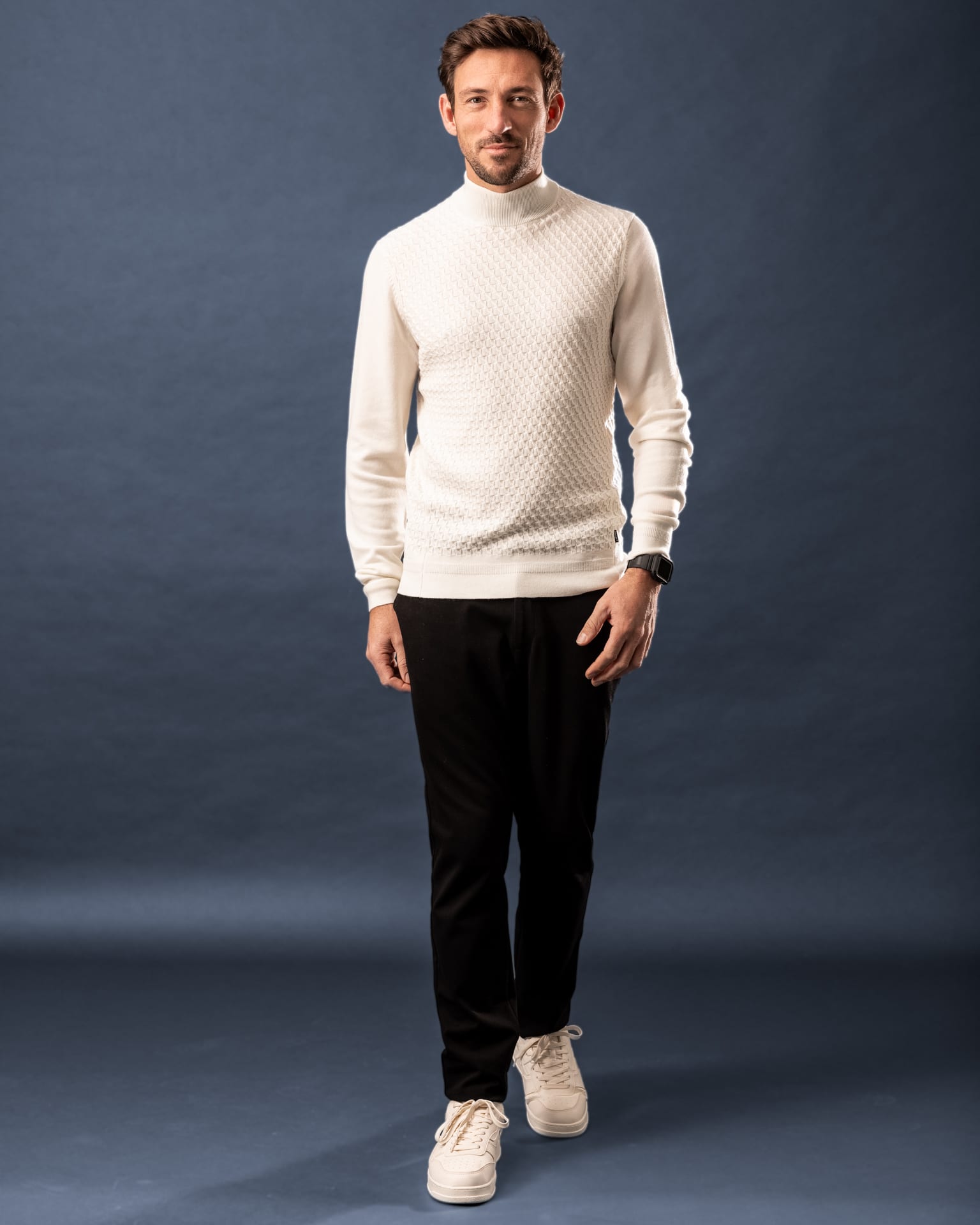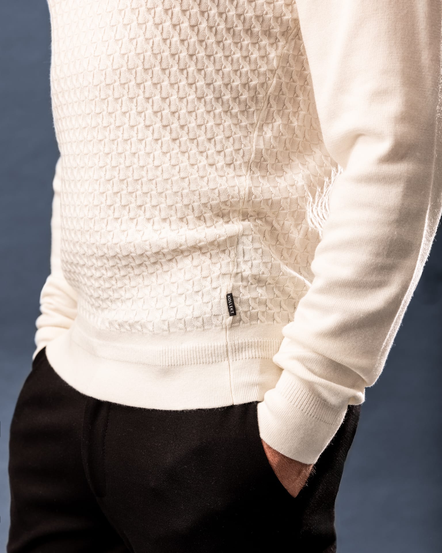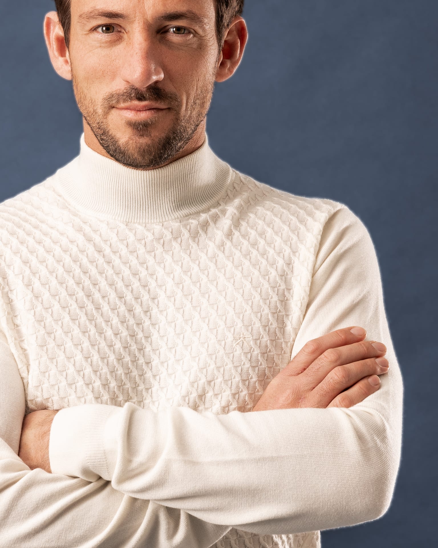 MERINO-LYOCELL TWIST CHECK TURTLE TRUI - OFF WHITE