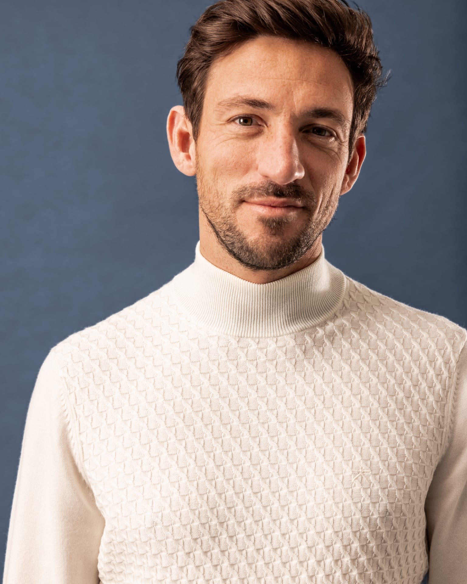 Merino-Lyocell Twist Check Turtle Trui – Een investering in tijdloze klasse en ultiem comfort.