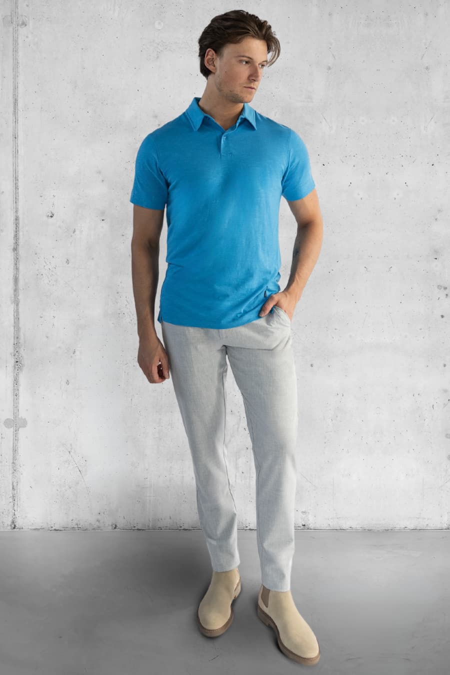 De Sanremo Jersey Polo is gemaakt met de beste materialen en ontworpen om je comfortabel te laten voelen. De combinatie van Lyocell & Katoen creëert een stof die zowel zacht, ademend, anti bacterieel als duurzaam is, perfect om de hele dag door te dragen. Het slub effect in de jersey voegt textuur toe, waardoor dit shirt zich onderscheidt van 'standaard' polo's. De onberispelijke pasvorm is moeiteloos te combineren van vrijetijd t/m formele gelegenheden, zodat je er altijd goed uitziet en je je overal comfortabel voelt.